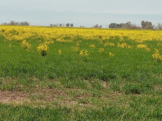 Brassica rapa (L.), comúnmente conocida como "Nabo" es una maleza que se encuentra naturalizada en todas las provincias de nuestro país. En general está presente en potreros, rastrojos, banquinas y áreas marginales.