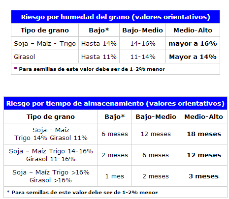 A medida en que los valores de humedad del grano a embolsar se alejen por encima de la humedad de recibo determinada para su comercialización, aumentan los riesgos de deterioro del grano. En caso de embolsar con destino a semilla es seguro tomar como umbral máximo la humedad de recibo.