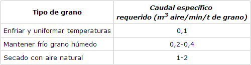 La velocidad del secado de granos con aire depende del caudal del mismo. Es riesgoso tratar de secar trigo con más de 16% de humedad con aireación "típica de mantenimiento".