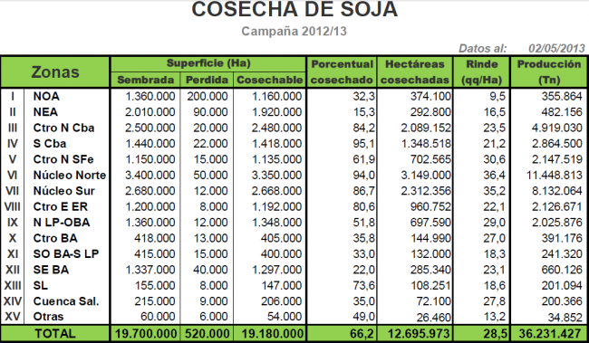 En números absolutos, luego de recolectarse más de 12,5 MHa, el volumen parcial acumulado supera las 36 MTn, y frente a este panorama sostenemos nuestra proyección de producción en 48.500.000 toneladas para la actual campaña.