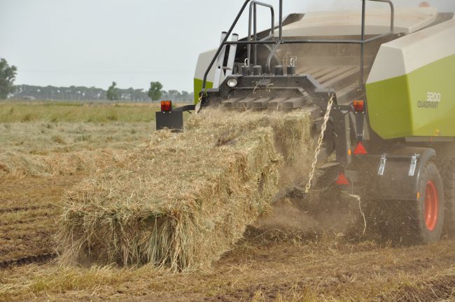 Por su parte, las enfardadoras prismáticas gigantes ofrecen la gran ventaja de no tener que detener el trabajo durante el atado, la alimentación de forraje es constante sin siquiera reducir la velocidad de avance del equipo. El proceso de atado puede durar 1,5 seg. Pero claro para que justifique su trabajo se debe disponer de gran cantidad de material en superficie.