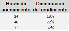 En un ensayo de invernáculo en donde los tratamientos tuvieron cinco repeticiones, se expuso semilla de 20 líneas a períodos de anegamiento que iban de 0 a 144 horas, y se determinó la emergencia en porcentaje. En la siguiente tabla se observan los promedios de los tratamientos: