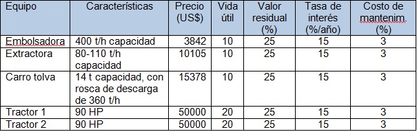 Detallamos a continuación un análisis realizado por el Ing. Agr. Ricardo Bartosik de INTA EEA Balcarce en el cual se estudia la composición de costos que representa el acopio de granos bajo esta metodología. En la tabla 1 se detallan los precios utilizados en el análisis mencionado, valores imprescindibles para comenzar todo estudio económico de costos. Vale aclarar que están comprendidos los trabajos de transporte desde el lote hasta el embolsado y luego la extracción, pero no el transporte al acopio-industria.
