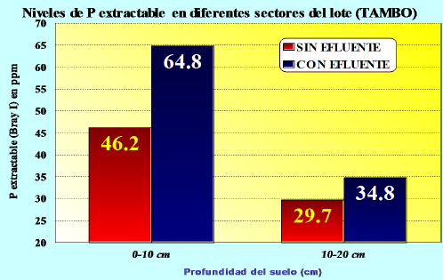 Además de la teoría el ingeniero presentó resultados de ensayos realizados por el INTA en la zona de Rafaela en los cuales se destaca el fuerte aumento del fosforo y de la materia orgánica del suelo.