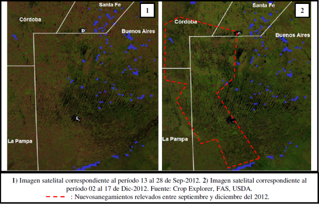 Respecto de los campos que a la fecha presentan excesos hídricos, podemos mencionar ciertos factores de importancia luego de una gira realizada por el Departamento de Estimaciones Agrícolas de la Bolsa de Cereales a las zonas Centro y Oeste de Buenos Aires y Sudeste de Córdoba. Se relevaron grandes superficies que originalmente fueron destinadas al cultivo de maíz con una mayor intención de siembra, pero que aún se encuentran con excesos hídricos importantes que no están dejando avanzar la siembra, también complicada por los caminos anegados que no permiten la normal logística para dicha tarea.