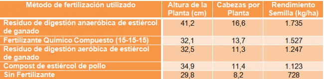 De esta manera, resulta conveniente la utilización del residuo digerido ya que puede generar mejoras en rendimiento por encima de las obtenidas con un fertilizante químico, además resulta muy importante tener en cuenta el ahorro económico que implica reutilizar esos residuos como asi también contar con un destino final para el estiércol que producen en grandes cantidades tanto feed lots como establecimientos porcinos o aviares.