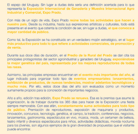 Expo Prado 2013 - Uruguay108ª. Exposición Internacional de Ganadería y Muestra Agro Industrial y ComercialFacebook0X0LinkedIn0e-Mail0WhatsApp0MásPor:Agritotal.com15 Sep 2013