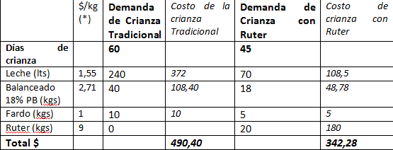 - Un menor uso 4de leche de tanque que puede ser vendida a la usina o de sustituto lácteo (sólo 70 lts/ternero).