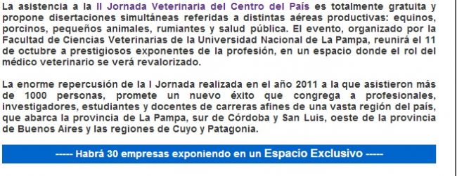 II Jornada Veterinaria del Centro del PaísFacebook0X0LinkedIn0e-Mail0WhatsApp0MásPor:Agritotal.com11 Oct 2013