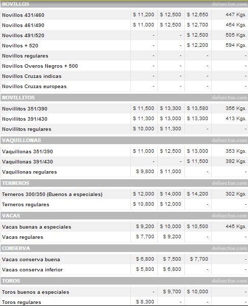 Con respecto a la rueda previa: novillos, novillitos y terneros; perdieron algo de terreno. La vaca presentó mejoras del 2% y sigue siendo la categoría más buscada en este recinto.
