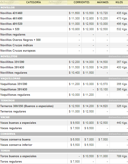 Un dato para destacar fue la actitud de la demanda en las subastas. A pesar de lo abultada de la oferta, los remates fueron ágiles y en varias oportunidades los supermercados se trenzaron por algún lote de novillitos. Los máximos corrientes en todos los renglones prácticamente calcaron los de la rueda previa, por lo que le atribuimos los quebrantos a la hacienda regular y a algunos lotes faltos de terminación.