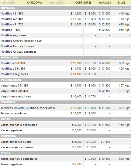 Con respecto al cierre del período previo, la jornada presento bajas en todas las categorías, pero las mismas no superaron el 2%. Además, hoy faltó hacienda especial de la que marca los grandes máximos y que rompe récords.