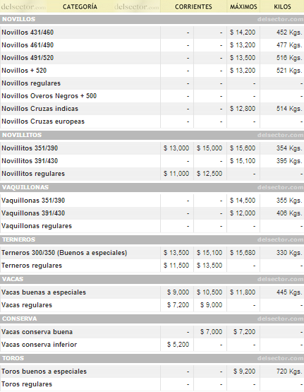 Hubo subas en todas las categorías, con respecto a la rueda anterior, y un nuevo máximo histórico para los terneros: Se pagó $15,68 por un lote de 325 kilos en la firma Colombo y Magliano S.A.