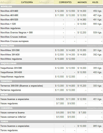 Naturalmente el mercado buscará a partir de la próxima semana, la primera completa del dos mil catorce, la estabilidad. Pero tanto consignatarios como compradores, coinciden en que éstos son los precios que se verán durante el verano en el Mercado de Liniers.