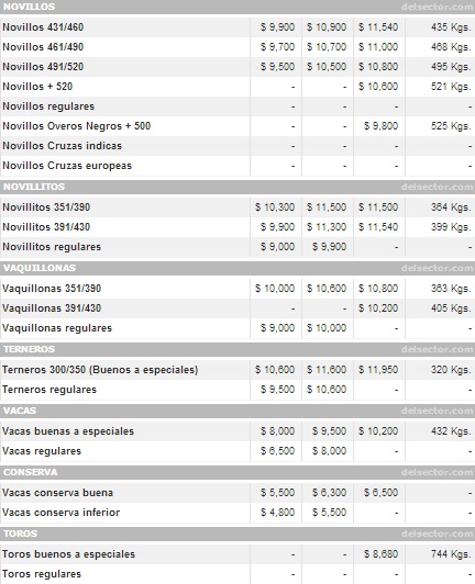 Por un lado, la vaca parece no tener techo. Es habitual ver máximos corrientes por encima de los $9 y máximos para la categoría arriba de los $10. Aunque con calma, el novillo comienza a acompañar esta tendencia, impulsado por la escasez.