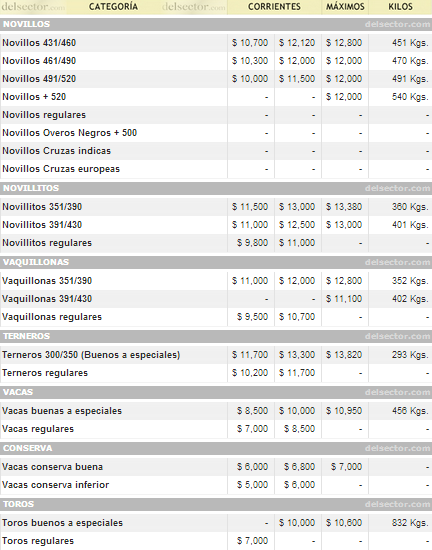 El novillo llegó a $12 tanto para medianos ,como para pesados y de más de $520 kilos. Se destacaron los livianos particularmente por un lote de 432 kilos a $12,80.