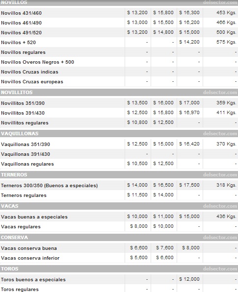 Más allá de la veracidad o no de este rumor, no se vio operando a los grandes supermercados y se notó cierta calma. En este marco, la plaza cotizó en baja siendo las categoría más perjudicadas, el ternero y el novillito con quebrantos del 9 y el 6% respectivamente. La vaca cayó un 5% y sólo se mantuvieron los novillos con un pobre volumen de operaciones.