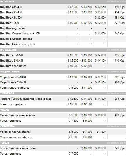 Con respecto al cierre del período anterior, se destacaron los novillos con un alza del 10% y los novillitos con mejoras que rondaron el 8%. Todos los renglones mejoraron y se espera que los precios busquen estabilidad dentro de estos parámetros.