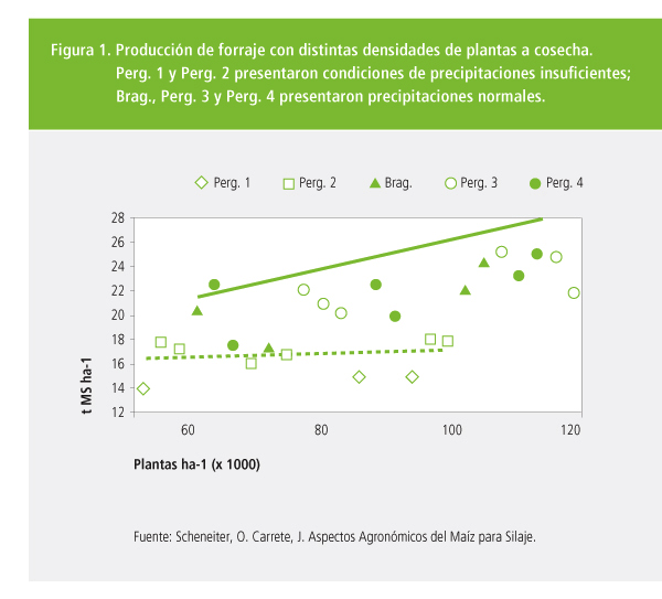 Aunque parezca una redundancia es importante comprender esta realidad, ya que la decisión de la densidad de siembra afecta tanto a la producción de forraje total, como a la proporción de espiga de ese forraje. A diferencia del cultivo para grano, cuando el objetivo es forraje, todo lo que produce la planta se debe transformar en alimento, y de ahí la importancia de conocer qué componentes se modifican con la densidad de siembra, y así poder tomar una decisión informada en este aspecto.