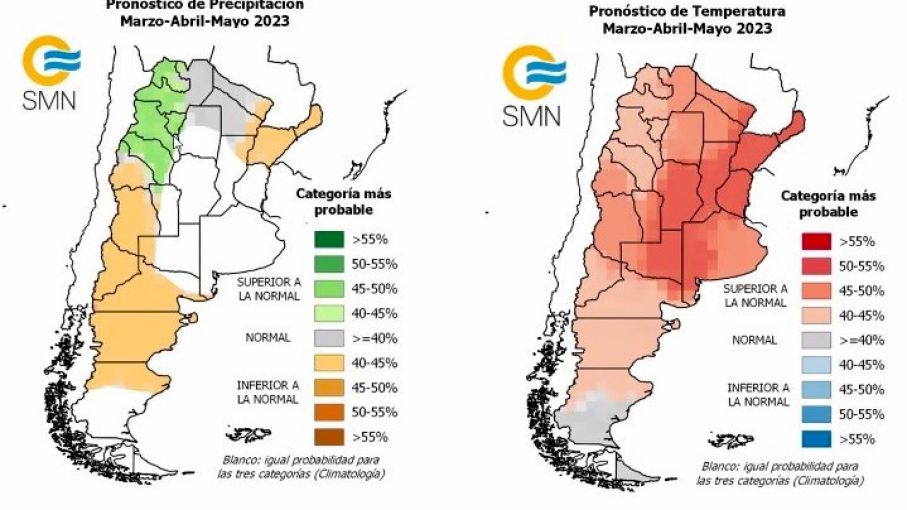 En su informe del 3 de marzo, la cátedra de Climatología y Fenología Agrícolas de la Facultad de Agronomía de la UBA (FAUBA) indicó que en gran parte de la región productiva agrícola del país, la escasez de lluvias durante los meses de verano, combinada con las olas de calor extremo, desecó los suelos y afectó los rendimientos del maíz y la soja. Según estimaciones de la Bolsa de Cereales de BA, las cosechas de maíz y soja estarían 11 y 10 millones de toneladas por debajo de la campaña pasada, respectivamente. Mientras tanto, el pronóstico de El Niño-Oscilación del Sur informa que con un 94% de probabilidades tendría lugar una transición de La Niña hacia condiciones neutrales en el trimestre marzo-abril-mayo.