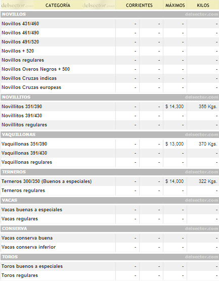 Concluyeron las operaciones del primer día de ventas del 2014, en el Mercado de Liniers. Ingresaron 45 animales que fueron comercializados por la firma “Lartirigoyen y Oromí S.A.”. La hacienda fue remitida desde Daireaux, provincia de Buenos Aires, por el establecimiento “Agrop. La Enriqueta”. Fueron 23 novillitos de 355 kilos a $14,30; 19 terneras de 330 a $14 y tres vaquillonas de 370 kilos a $13. Los animales -especiales de feedlot- superaron la tónica de los últimos días de negocios. Esto deja en blanco sobre negro, que la demanda está necesitada y debe salir a comprar para reponer, y para hacerse de las haciendas que no adquirió por los cortes de luz de los ultimos días.