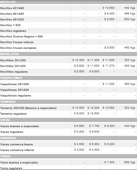 Las vacas, a pesar de marcar un buen máximo -$9,30 por un lote de 440 kilos- cayeron un 5% comparadas con el viernes, pero esto obedece a la calidad de los lotes encerrados y no a una actitud de la demanda en particular.