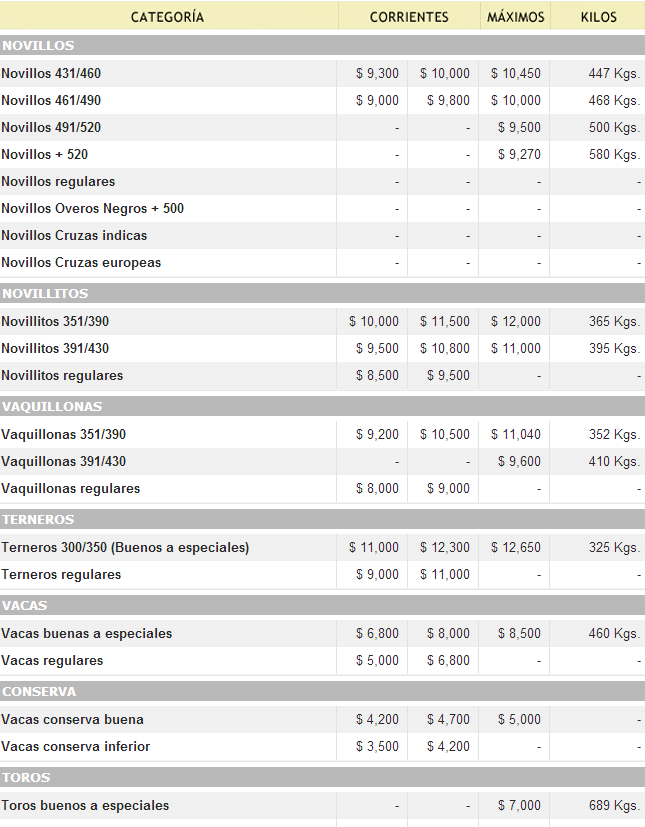 A pesar de todo, los precios fueron similares a los del cierre del período anterior con subas para algunas categorías.