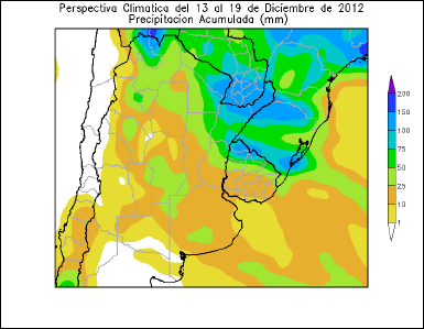 PERSPECTIVA AGROCLIMÁTICA DEL 13 AL 19 DE DICIEMBRE DE 2012: CONTINÚAN EL CALOR Y LAS PRECIPITACIONES DE VARIADA INTENSIDAD CON RIESGO DE TORMENTAS SEVERAS
