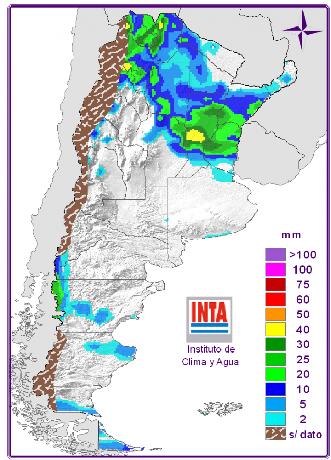 Mientras que en la zona de la Patagonia, el sistema frontal frío provocará algunas lluvias aisladas sobre la provincia de Chubut, Santa Cruz y Tierra del Fuego.
