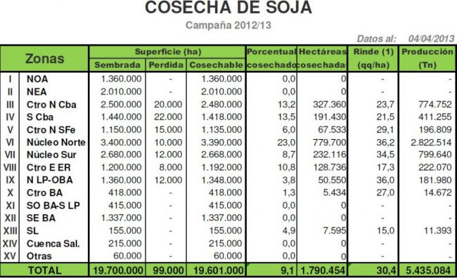 Abundantes lluvias que cubrieron extensas áreas provocaron una abrupta interrupción sobre el avance de las cosechadoras en sectores del centro y sur de nuestra región agrícola. Al presente informe el avance nacional de cosecha logró cubrir un 9,1 % de la superficie potencialmente recolectable, entregando un rinde medio nacional de 30,4 qq/Ha y permitiendo acumular un volumen parcial de 5,4 millones de toneladas. El avance intersemanal de cosecha es de 4,1 %, pero la recolección presenta un retraso de -4 % en comparación a igual fecha del ciclo previo.