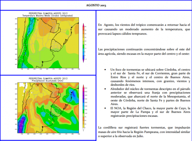 Es probable que la primavera observe lluvias abundantes, pero la primera parte del verano podría volver a registrar una pausa en las precipitaciones, que serían acompañadas por elevadas temperaturas, en forma similar a lo ocurrido en la temporada precedente.