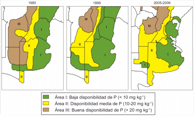Desde la década del 80, con el avance de la agricultura, la disponibilidad de fósforo se ha visto disminuida hasta niveles por debajo de las 20ppm mientras que en otras ni siquiera se alcanzan las 10ppm.