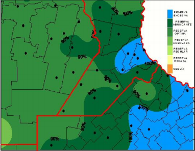 Los lotes de maíz de la zona se observan en excelentes condiciones debido a que las lluvias han acompañado desde el comienzo del cultivo. La gran mayoría de los sembrados ya se encuentran florecidos y con buenas reservas de agua en el perfil, con elevadas perspectivas de rinde. Igualmente, deberá tenerse en cuenta la superficie perdida por anegamiento en algunos sectores, y la menor superficie implantada en esta campaña. Se reporta incidencia de roya, por lo que se han realizado algunos tratamientos de fungicidas preventivos.
