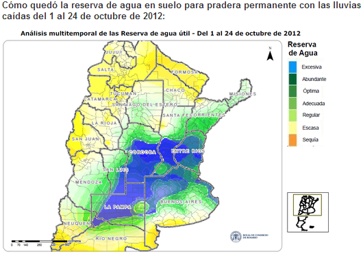 Se proyecta una superficie de intención de siembra de soja 2012/13 de 19,5 millones de hectáreas, casi 4% por sobre la campaña pasada. La siembra de soja comenzó muy aisladamente, con retraso y bajo un marco de gran incertidumbre por el elevado perfil húmedo. Es probable la ocurrencia de siembras muy trabadas, problemas en la etapa de implantación y superposición de labores con el cultivo de maíz.