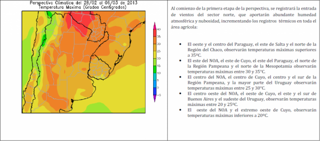 PERSPECTIVA AGROCLIMÁTICA DEL 28 DE FEBRERO AL 6 DE MARZODE 2013: TEMPERATURAS MÁXIMAS MODERADAS Y PRECIPITACIONES GENERALES SEGUIDAS POR UN DESCENSO TÉRMICO.