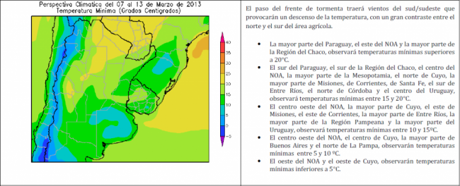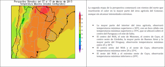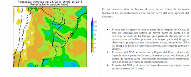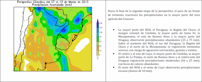 PERSPECTIVA AGROCLIMÁTICA DEL 7 AL 13 DE MARZO DE 2013: TEMPERATURAS MODERADAS Y PRECIPITACIONES SOBRE GRAN PARTE DEL ÁREA AGRÍCOLA