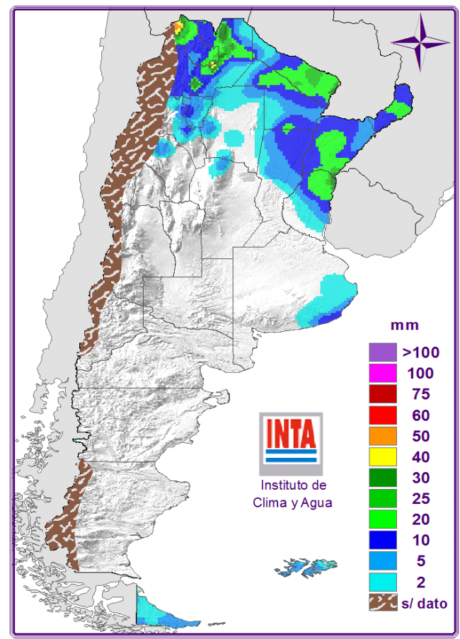 Las condiciones de tiempo inestables afectarían al NEA, NOA y noreste pampeano con lluvias y tormentas aisladas. Sobre la porción central tiempo estable y ascenso de las temperaturas con excepción de la costa sur bonaerense donde se podrían registrar algunos chaparrones aislados. En Patagonia se prevé nubosidad variable y leve ascenso de las temperaturas, no se esperan precipitaciones.