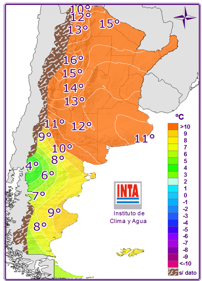 Sobre el norte del país se presentaría tiempo bueno y cálido con marcado ascenso de las temperaturas mínimas. Se intensificarían los vientos del sector norte con aumento de la nubosidad y probables lluvias y algunas tormentas sobre la porción oeste. Sobre la Patagonia habría nubosidad en aumento con posibles lluvias y algunas nevadas aisladas, especialmente sobre zonas cordilleranas.
