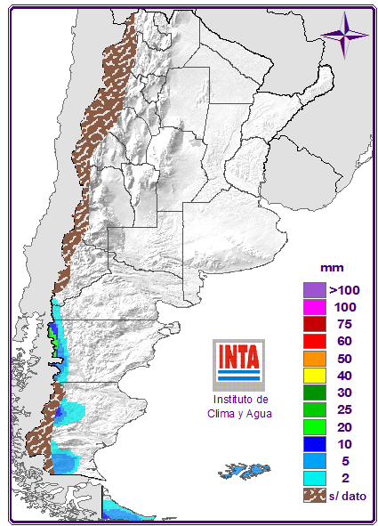 Sobre el centro y norte del país se espera mejoramiento de las condiciones del tiempo con vientos del sector sur y el ingreso de una masa de aire más fresca con descenso de las temperaturas mínimas y cielos despejados. Sólo se presentaría tiempo inestable con probabilidad de lluvias y nevadas sobre zonas cordilleranas de la Patagonia acompañadas por vientos intensos del oeste.