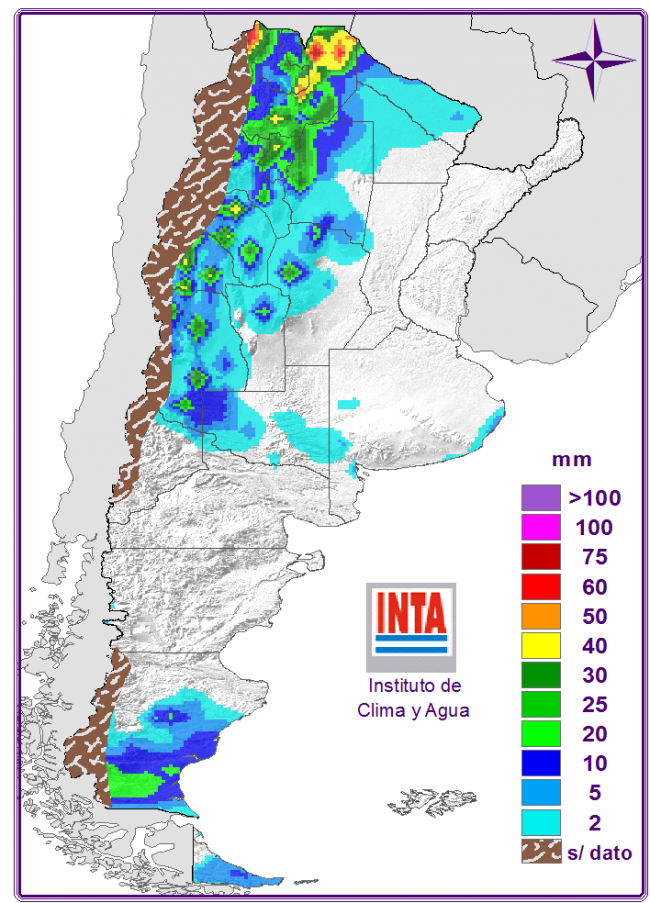 Las lluvias y algunas tormentas aisladas continuarían afectando extremo norte del país y oeste de Cuyo. Habría ascenso de las temperaturas y nubosidad en aumento. Sobre Patagonia se prevé nubosidad variable y posibilidad de algunas lluvias en el extremo sur.