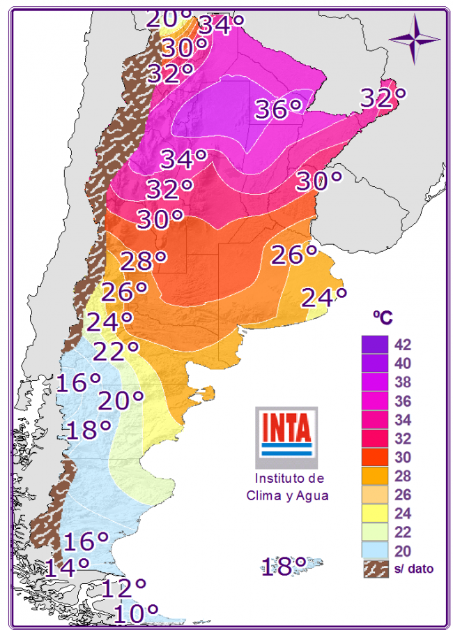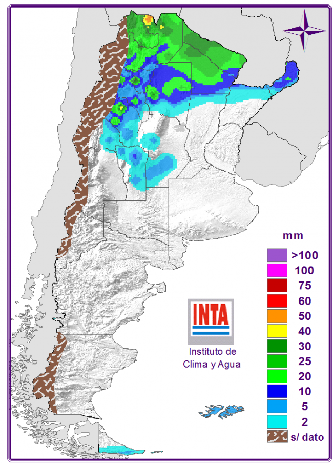 Habría tiempo lluvioso con tormentas de variada intensidad sobre el NOA, NEA, Cuyo (norte) y Córdoba (oeste). Sobre centro del país se prevé cielo parcialmente nublado con leve descenso de las temperaturas máximas debido al ingreso de una masa relativamente más fría. Sobre la región patagónica no se esperan precipitaciones con vientos del sudoeste y leve descenso de las temperaturas máximas.