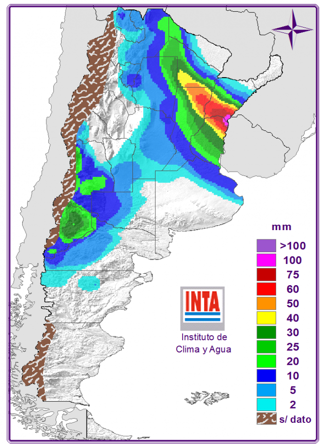 Las precipitaciones se extenderían sobre hacia el NEA con lluvias y tormentas de variada intensidad. Podría registrarse aún descenso de las temperaturas junto con viento persistente del sudeste sobre la mayor parte del centro y norte del país. Sobre zonas cordilleranas del sur de Cuyo y norte patagónico se prevé otra jornada de lluvias y nevadas.