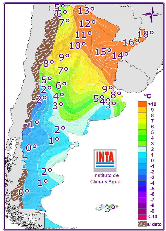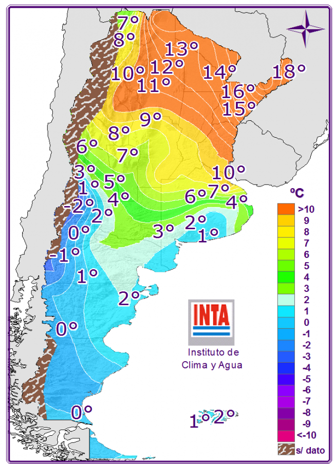 Continuaría la probabilidad de lluvias con tormentas de variada intensidad sobre el centro y el NOA con descenso de las temperaturas mínimas debido al pasaje de un frente frío. Habría probables lluvias y nevadas sobre el norte patagónico y oeste de Cuyo; algunas podrían ser intensas. Hacia el sur del país habría leve ascenso de las temperaturas y poca nubosidad.