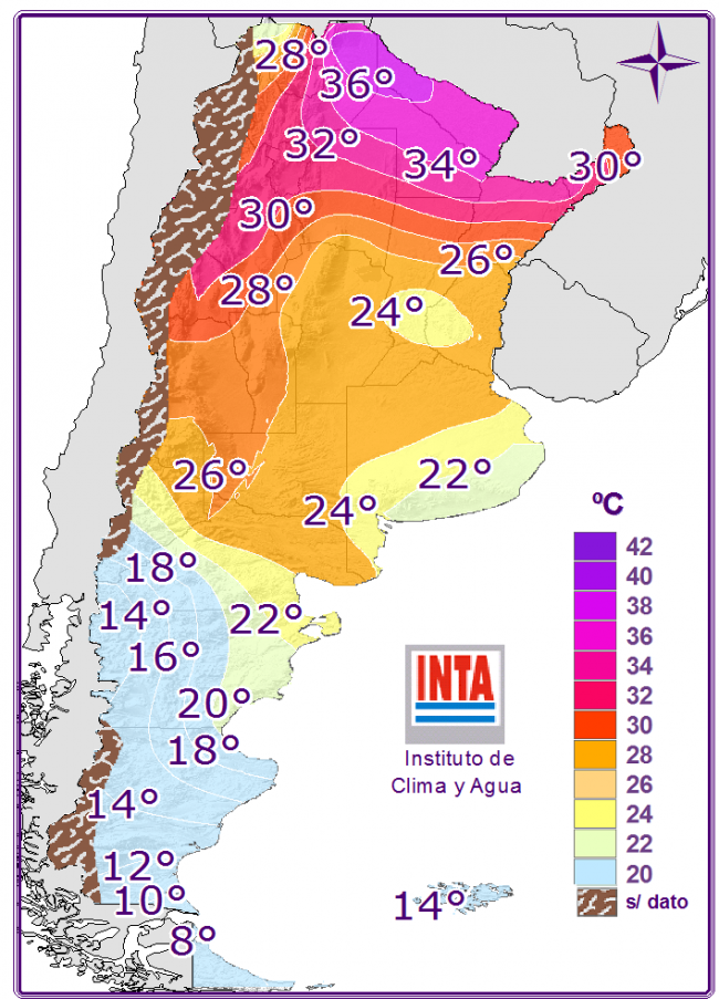 Un sistema frontal se desplazaría rápidamente sobre el centro del país hacia el NOA acompañado por lluvias y tormentas aisladas. Habría descenso de las temperaturas máximas sobre la mayor parte del centro y norte del país por el ingreso de una masa de aire relativamente más fría. No se esperan precipitaciones sobre el norte patagónico y se registraría leve ascenso de las temperaturas máximas. Habría tiempo ventoso del sudoeste en toda la Patagonia y lluvias con algunas nevadas aisladas sobre el extremo sur.