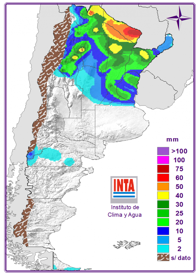 Las precipitaciones se esperan sobre NOA, NEA, norte cuyano y pampeano con lluvias y tormentas de variada intensidad; algunas podrían ser localmente intensas. Habría leve ascenso de las temperaturas junto con vientos del sector noreste sobre la mayor parte del centro y norte del país. En la Patagonia, sur de Cuyo y la Pampa se prevé tiempo bueno con descenso de las temperaturas mínimas.