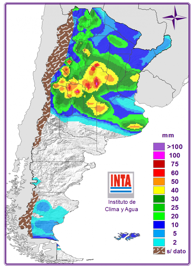 Se prevé condiciones de tiempo inestable y caluroso sobre el norte argentino y algunas tormentas aisladas con mejoramientos temporarios. Sobre la porción central se intensificarían las precipitaciones con tormentas de variada intensidad, algunas con abundante caída de agua. Sobre Patagonia se esperan vientos del sudoeste con leve descenso de las temperaturas máximas y posibles precipitaciones sobre Santa Cruz.