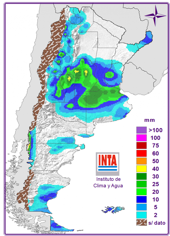 Mejorarían las condiciones del tiempo sobre la porción central con leve descenso de las temperaturas máximas. Las precipitaciones continuarían afectando el NOA y NEA con tormentas aisladas y mejoramientos temporarios; se registraría ascenso de las temperaturas máximas. Sobre la Patagonia se espera ascenso de las temperaturas y aumento de la nubosidad hacia la noche con algunas precipitaciones sobre zonas cordilleranas, sur de Santa Cruz y Tierra del Fuego.