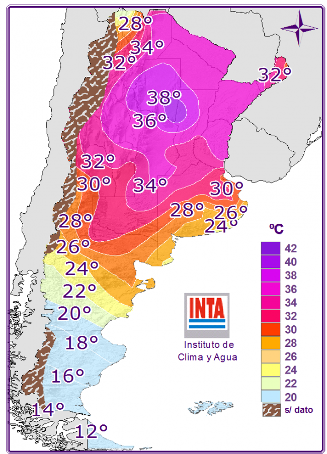 Continuaría el tiempo caluroso con ascenso de las temperaturas sobre la mayor parte del centro y norte del país. Habría algunas tormentas aisladas sobre NOA y el norte del NOA. Un sistema frontal afectaría las provincias de Cuyo, Córdoba, La Pampa (oeste) y Buenos Aires con algunas lluvias y tormentas de variada intensidad con posterior descenso de las temperaturas. La región patagónica presentaría nubosidad variable con leve descenso de las temperaturas debido al ingreso de una masa de aire más fría; se registrarían algunas precipitaciones sobre su extremo sur.
