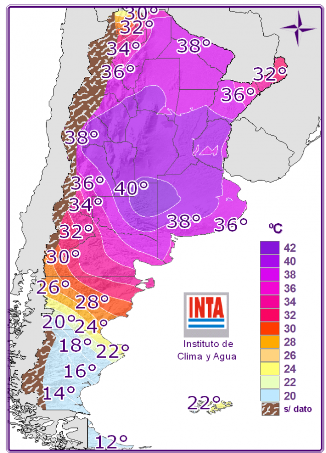 Condiciones de tiempo muy calurosas se esperan para gran parte de la región central del país. El cielo se mantendrá entre algo y parcialmente nublado con viento leve del norte y noroeste. Sobre la costa sudeste bonaerense el tiempo se tornará inestable con probables chaparrones y tormentas. Sobre la región del NOA podrán registrarse algún chaparrón o tormenta aisladas especialmente en horas vespertinas. En tanto en la Patagonia las condiciones serán buenas con temperaturas cálidas en la porción norte y algo inestable sobre el extremo sur.