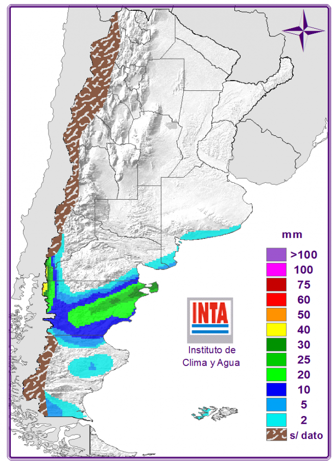 Se espera el pasaje de un frente frío con aumento de nubosidad y probabilidad de precipitaciones sobre el sur de Buenos Aires y centro patagonico; habría leve descenso de las temperaturas mínimas sobre el centro y norte argentino. En la región Patagónica se prevé marcado descenso de las temperaturas con vientos intensos del sudoeste.